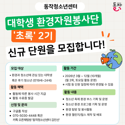 2026.3.21 (토) 0:00 ~ 2026.12.31 (목) 23:59 3.21 ~ 12.31 서울특별시 동작구 상도로68길 1-16