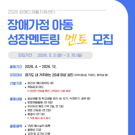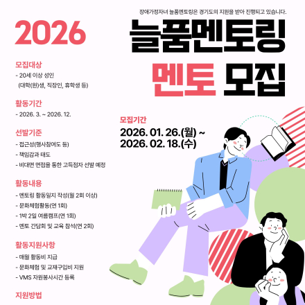 2026.4.1 (수) 0:00 ~ 2026.12.31 (목) 23:59 4.1 ~ 12.31 경기도 수원시 팔달구 경수대로 464