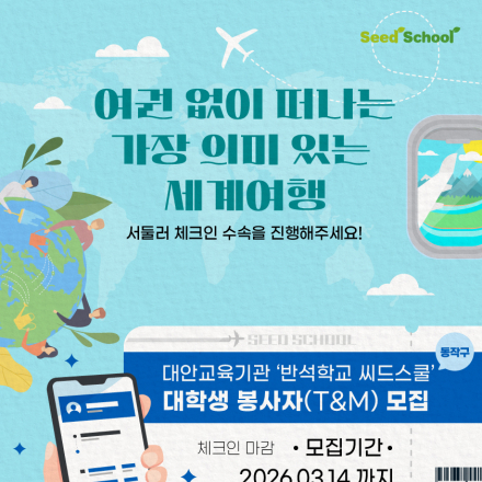 2026.3.7 (토) 0:00 ~ 2026.12.31 (목) 23:59 3.7 ~ 12.31 서울특별시 동작구 상도로15바길 5